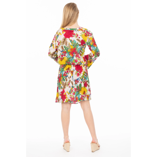 Short Floral Bohemian Dress With Drawstrings