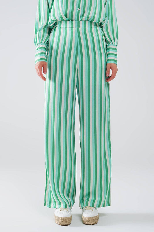 Vertical Striped Straight Leg satin Pants in Green