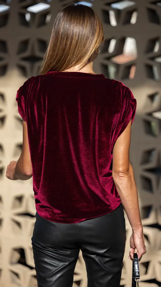 Velvet Ruched Shoulder Tee