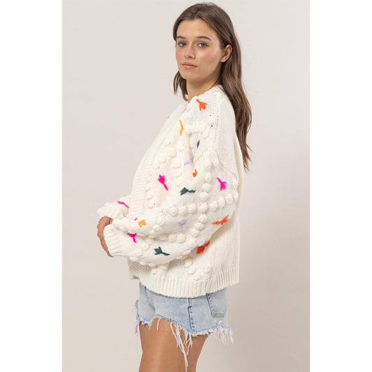 Runa Pointe Knit Top with Embroidered Summer Flowers