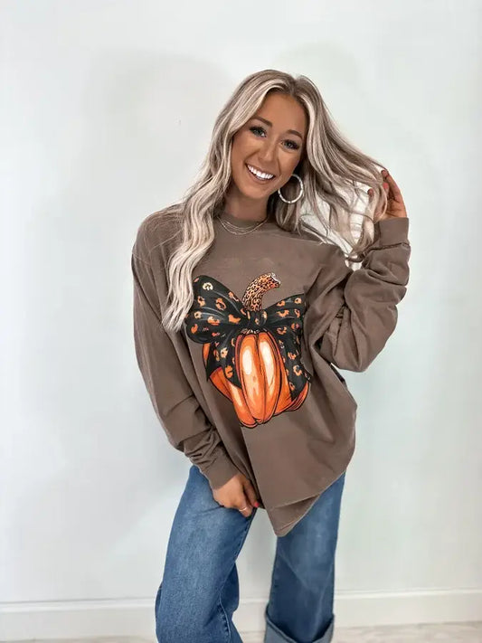 Leopard Pumpkin Espresso Long Sleeve Graphic tee