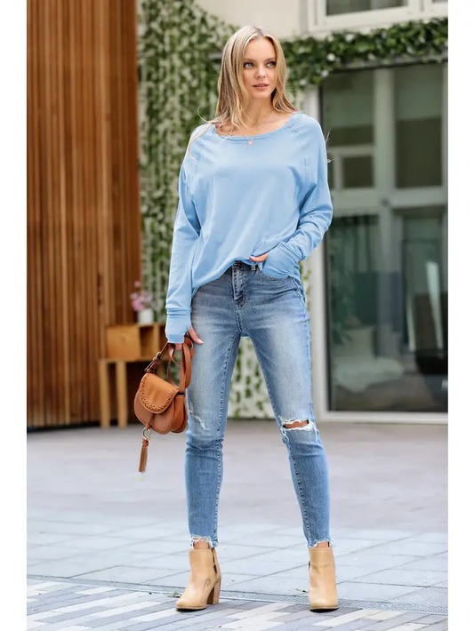 Sky Blue Leopard Gradient Color Patchwork Distressed Jeans