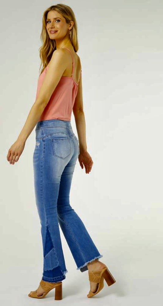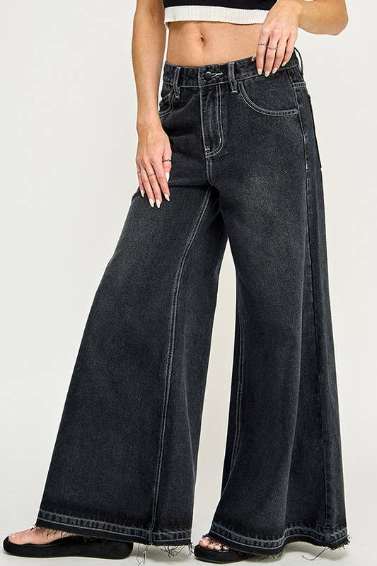DENIM ASYMMETRICAL WAIST STRAIGHT LEG JEANS
