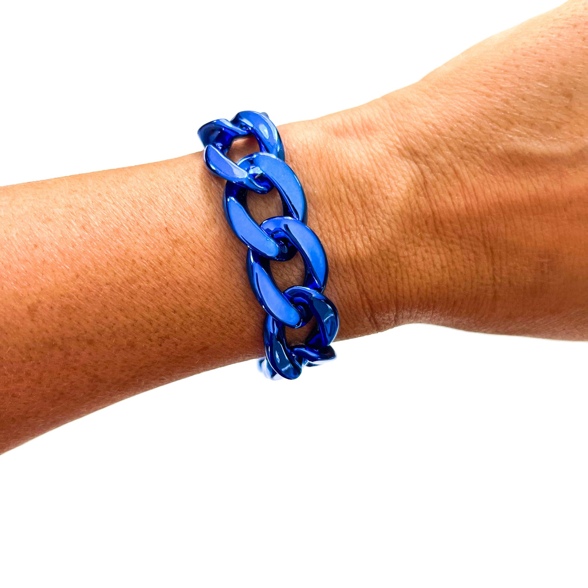 Metallic Royal Blue Chunky Acrylic Chain Link Bracelet