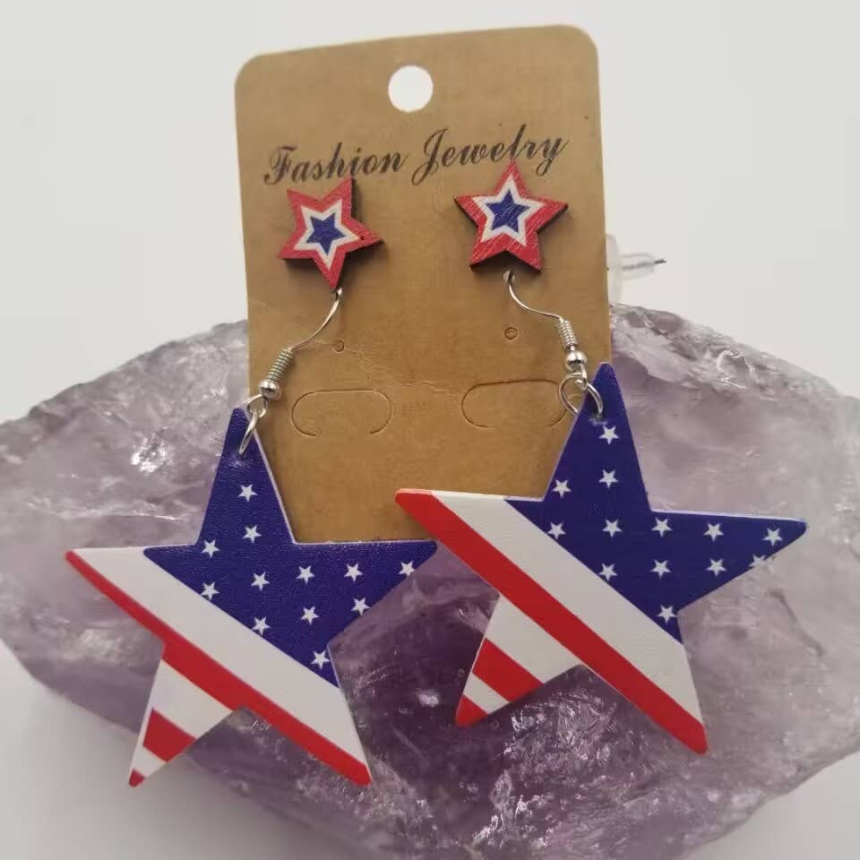 Set includes 1 pair wood stud earrings and 1 pair leather earrings