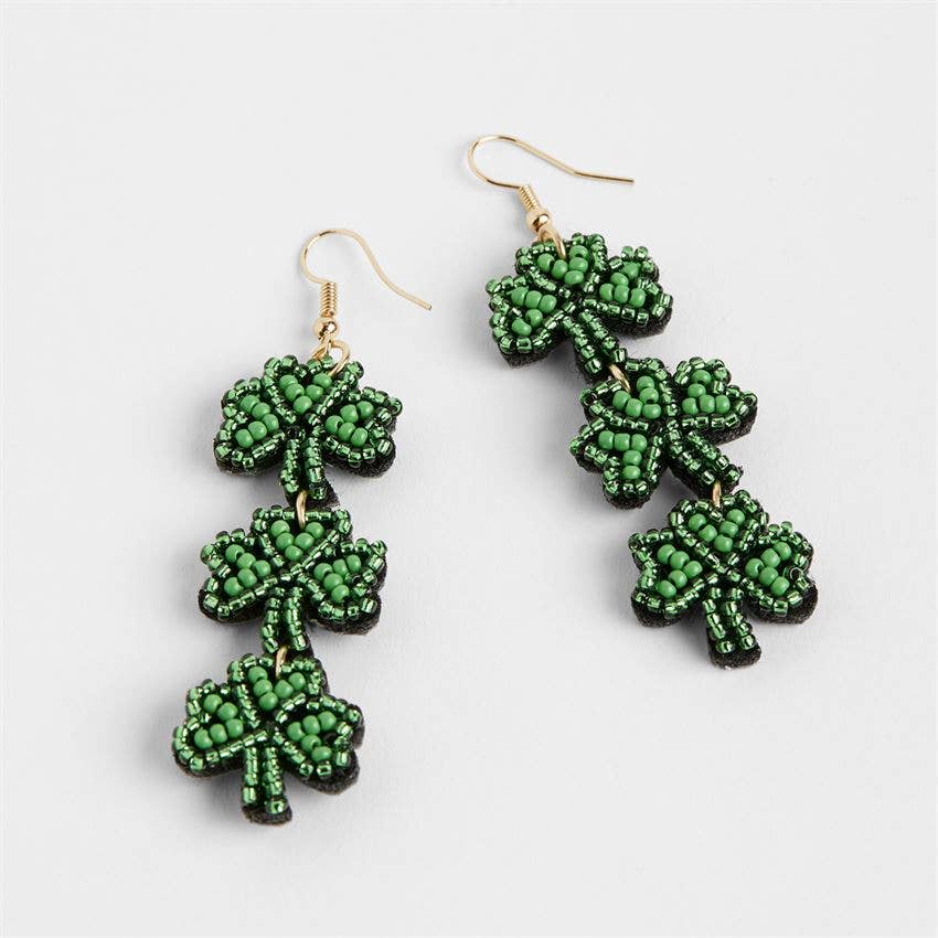 Celebrate St. Patrick's Day in style with our Shamrock Dangle Earrings. The delicate green glass pendants will add a touch of luck to any outfit, while the lightweight design ensures all-day comfort. Embrace the spirit of the holiday with these charming earrings!