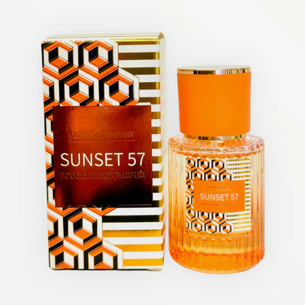 - Sunset 57 Scent Notes: Bergamot, Amber, woody notes of Sandalwood & Cedar