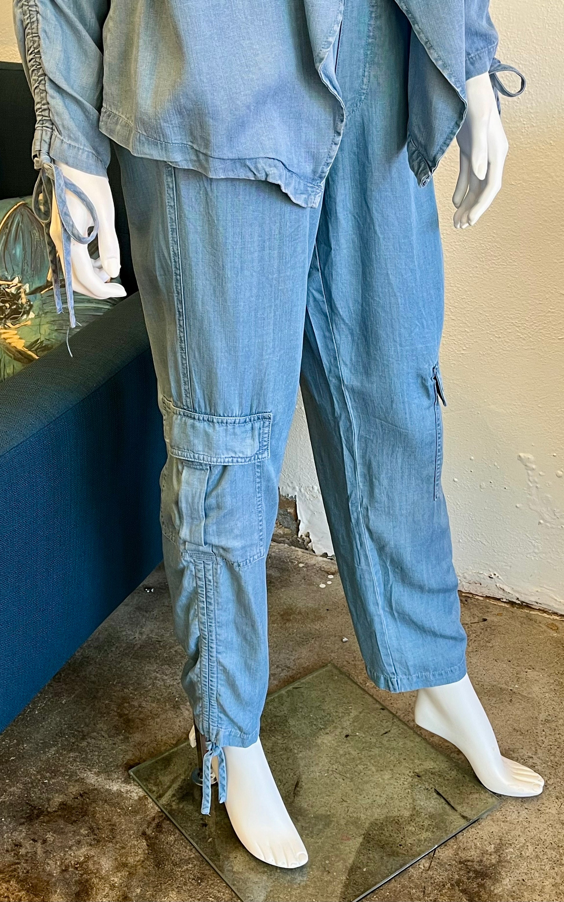 Indulge in luxurious comfort with our Tencel Denim Cinch Cargo Pant. Made from premium quality Tencel denim, these pants offer a perfect blend of style and comfort. With its cinched waist and cargo pockets, these pants provide a flattering fit and practical storage. Upgrade your wardrobe with these sophisticated and exclusive cargo pants.